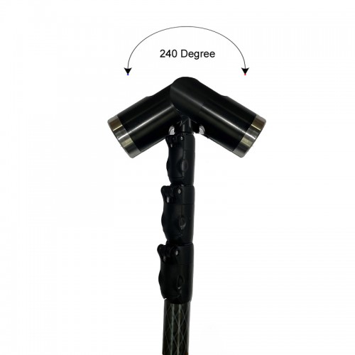 The camera head is fitted with a unique friction joint allowing the head to be articulated between 0° and 240°. Articulation can be achieved manually by adjusting the camera head against the friction joint to the desired angle. Articulation can also be achieved by placing the camera head against a fixed object and pushing or pulling the head to the desired angle. This is a real benefit when carrying out room/container searches as the camera doesn't need to be collapsed to carry out a full search.